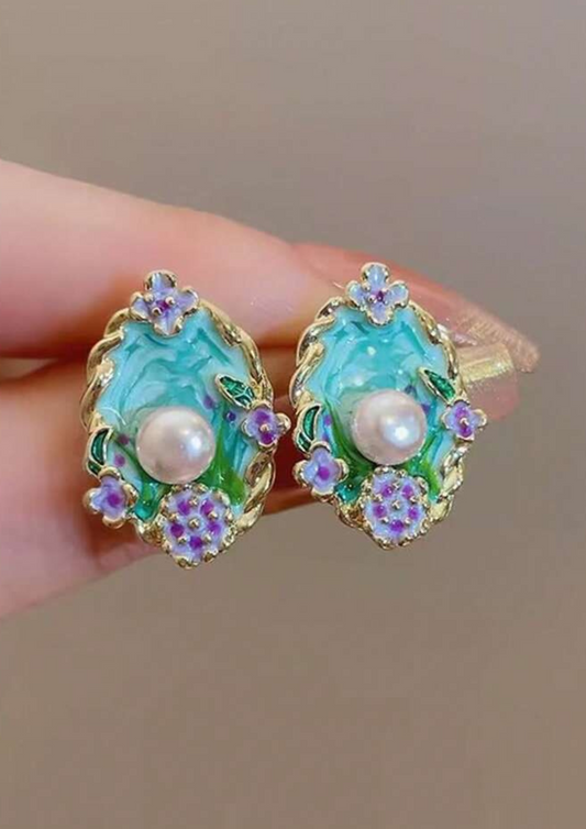 Blue Seashell Stud Earrings